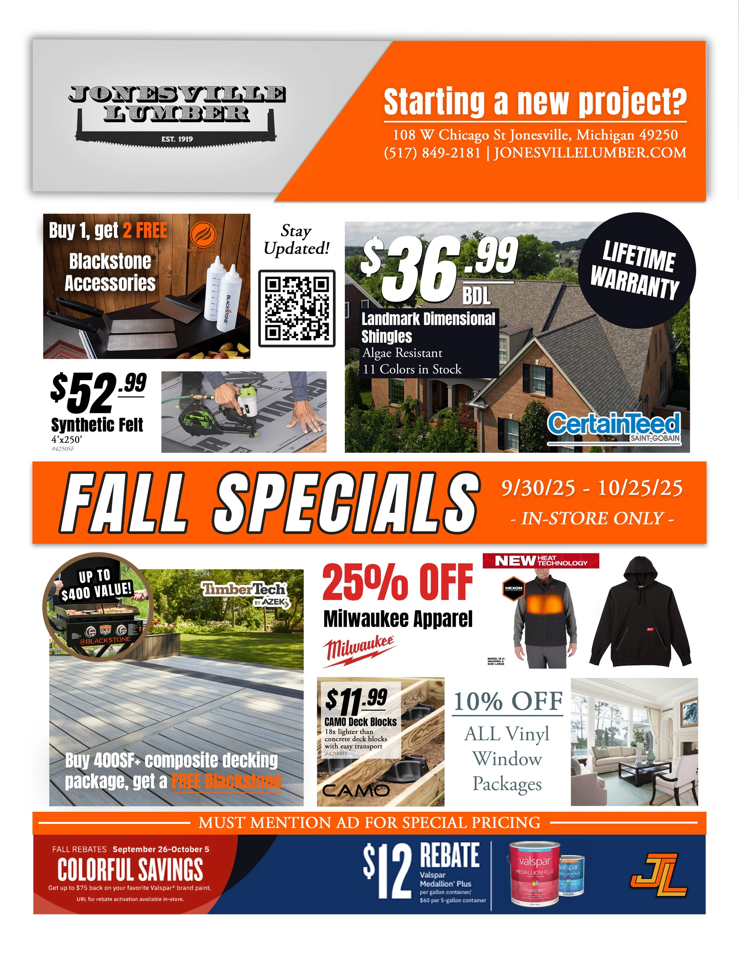 Save BIG as the summer wraps up. From 25% off Milwaukee apparel to a FREE Blackstone with the purchase of a 400SF+ TimberTech deck package, take advantage of these deals before they’re gone!